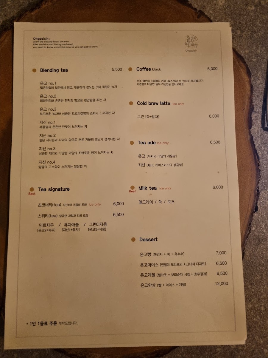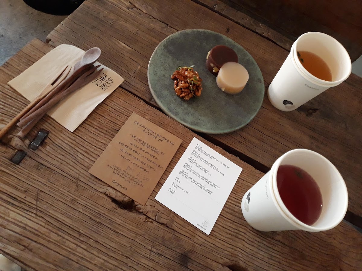 Ongozisin's menu is particularly celebrated for its remarkable selection of teas. You can choose from around seven varieties, each crafted with attention to detail and bursting with flavor. Notably, the Ongoo3 tea stands out with its vibrant red hue and tropical sourness reminiscent of omija, delivering a perfectly balanced tangy taste that dances on your palate. For those who prefer something more classic, the Ongoo1 presents a clean and refreshing green tea flavor that’s perfect for any tea lover.